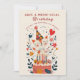 Un chat souriant et heureux fête, porte un casquette de fête et tient un bouquet de fleurs.