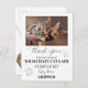 Une carte postale de félicitations pour l'anniversaire d'un chat mignon avec votre photo personnalisée avec un cadre blanc simple avec des empreintes de pattes de chat gris clair. Sur le dos est un étiquette de livraison spécial. Idéal pour un amoureux des chats.