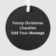 A funny Christmas checklist design showing Santa’s naughty-or-nice judgment with playful humor.