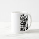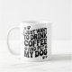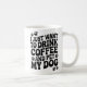 This is a funny dog mom or dad black and white minimalist coffee mug featuring a trendy retro groovy quote design says : i just want to drink coffee and pet my dog.