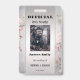 Drôle mariage porte-anneau photo badge d'identité avec votre photo personnalisée sur un arrière - plan design rose floral gris. À l'arrière, vous pouvez ajouter un code à barres personnalisé et des textes supplémentaires ou supprimer le modèle.