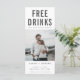 Ces dates sont réservées au couple amusant qui ne peut pas attendre de partager sa date de mariage avec sa famille et ses amis. Photo moderne "Boissons gratuites (et nous nous marions) la conception de typographie grise est customisée avec votre photo, noms, date mariage et emplacement.