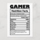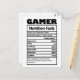 Funny Gamer Nutrition Facts Carte postale