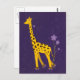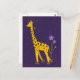 Carte postale violette avec une drôle de girafe grignotant sur une fleur violette et tenant quelques fleurs avec sa queue tout en patinant avec des patins à roulettes dont les roues sont faites de fleurs. Cette belle carte postale violette serait un cadeau pour une fille mignonne. Autres produits avec un design similaire: