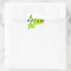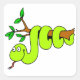 This image shows a cartoon-style green snake wrapped around a tree branch with leaves. The snake has big eyes, a small smile, and a red tongue, designed as a playful and colorful sticker for decoration.