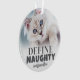 Personnalisé "Define Naughty" Cat Photo Ornement. Ajoutez une touche d'humour à votre décor de vacances avec ce drôle de décor de chat, parfait pour ceux qui ont un chaton malicieux ou un chaton sassant. L'avant présente le texte ludique "Define Naughty" ainsi que le nom de votre chat, capturant la personnalité excentrique de votre félin. Il y a aussi de la place pour une photo de votre chat pour ajouter une touche personnelle. Le dos présente un design empreinte de patte avec une découpe cardiaque au centre, ce qui le rend spécial. La couleur de police et l'empreinte de patte peuvent être customisés selon votre style. Ce saké humoristique est parfait pour les amoureux de les chats, ce qui en fait un cadeau amusant pour les vacances, les anniversaires, ou simplement parce que. Un excellent moyen de mettre en valeur le côté coquin de votre chaton, que ce soit sur le sapin de Noël ou toute l'année dans un endroit spécial !