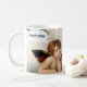 A funny coffee mug featuring the iconic angel detail from The Sistine Madonna by Raphael, with a modern twist and a customizable name. Perfect for coffee lovers, art fans, and anyone who needs caffeine to function.