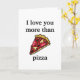 Envoyez un rire à votre bien-aimé avec cette carte de voeux de la Saint Valentin pliée "Je vous aime plus que la pizza". Personnalisez l'intérieur avec le nom du destinataire. Le message dit : "Chère pizza, je veux dire, NOM, Heureuse Sainte-Valentin".
