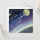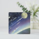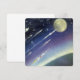 Illustration vintage de design futuriste de science-fiction représentant un groupe de fusées volant dans l'espace. Des étoiles et la lune sont au-dessus de l'horizon d'une planète étrangère de notre galaxie. Un design classique de science-fiction rétro des années 50 pour une bande dessinée représentant le futur.