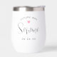 Un gobelet thermique vin futur Mme romantique avec la phrase "Future Mme" en caractères arrondis avec un cœur rose, un nom de famille personnalisé en élégant script, et la date du mariage en dessous. Un cadeau de fiançailles parfait ou un accessoire de fête d'enterrement de vie de jeune fille pour la future mariée. Célébrez le compte à rebours excitant vers le grand jour avec style. Tout le texte est entièrement personnalisable.
