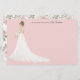 Cartes de notes personnalisées avec une mariée illustrée. Beaucoup de robe mariage, bouquets de fleurs, coiffures et teintes de peau à choisir. Le dos de la carte de note présente un motif floral.