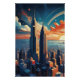 A cinematic futuristic skyline glowing under a radiant sunrise. Sleek skyscrapers rise above a sprawling cityscape, blending sci-fi ambiance with modern architectural beauty. Ideal for offices, creative spaces, bedrooms, or anyone who loves atmospheric and stylized urban art.