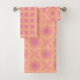 Profitez de cette serviette de bain set dans différents motifs de cercles, carrés et étoiles en gradients de la couleur de l'année 2024 Fuzzy Peach à Aurora Pink. Modifiez vous-même l'emplacement des motifs à l'aide de l'option "Modifier la conception".