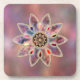 Un design fractal pâle mais coloré comme des nuages d'étoiles dans l'espace ou du marbre multicolore aux tons rose, mauve, pêche et bleu. L'arrière - plan est une texture tachetée comme une nébuleuse lointaine, et la pièce est accentuée par un médaillon de starburst encadré d'or comme si incrusté de figuier d'or. Compléter l'image sont des bijoux lisses à l'opale et des pierres précieuses facettées inset dans un fleuron doré.