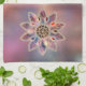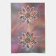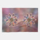 Un design fractal pâle mais coloré comme des nuages d'étoiles dans l'espace ou du marbre multicolore aux tons rose, mauve, pêche et bleu. L'arrière - plan est une texture tachetée comme une nébuleuse lointaine, et la pièce est accentuée par un médaillon de starburst encadré d'or comme si incrusté de figuier d'or. Compléter l'image sont des bijoux lisses à l'opale et des pierres précieuses facettées inset dans un fleuron doré.
