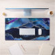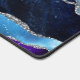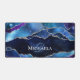 Ce tapis de bureau d'agate d'inspiration galaxie est idéal pour les joueurs, avec un design d'espace externe dans un motif de géode en marbre d'agate bleu foncé et violet avec des veines de parties scintillant argent.