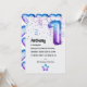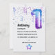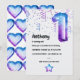 Ballons à tête bleue et violet tendance galaxy faux numéro de feuille d'anniversaire invitation à la fête d'anniversaire avec un flair masculin.