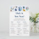 Ces élégantes cartes What's In Your Purse sont une excellente façon de lancer le plaisir à votre Baby shower et garanti d'être un grand succès! Il vous suffit de les faire circuler pendant le Baby shower où vous pourrez vous amuser en fouillant votre sac à main et en lisant les articles qu'ils ont dans la liste. La personne qui a le plus de points gagne ! Le design présente des planètes colorées avec des étoiles de feuille d'or imitation.