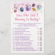 Ces adorables cartes de jeu de Guess Who Said It Mommy or Daddy sont une activité de Baby shower amusante. Il vous suffit de les faire circuler pendant le Baby shower où vous aurez du plaisir à deviner qui a dit chaque déclaration-maman ou papa. Le design présente des planètes colorées avec des étoiles de feuille d'or imitation.