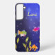 Coque Samsung Galaxy S22+ en Deep Blue avec poissons comiques illustrés. Le nom peut être changé. Merci à Creative Fabrica pour certains des éléments du design.