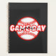 A dynamic sports-themed graphic featuring a white baseball with red stitching against a solid black background. The text "GAME DAY" is prominently displayed in a bold white font with a glowing red border. A stylized black crack effect runs through both the text and the ball, creating a powerful, high-intensity aesthetic perfect for team spirit or game-day promotion.