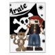 Un pirate de garçon avec un singe et le crâne et les os croisés diminuent et le texte qui lit le "pirate" est décrit sur le T-shirts de thème de pirate, cartes, mousepads, tasses, autocollants, et plus !