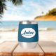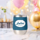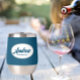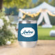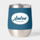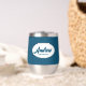 Offrez à votre garçon d'honneur de mariage ce gobelet à vin en acier inoxydable tendance et personnalisé, avec son nom en écriture stylisée à l'intérieur d'un design ovale blanc. La couleur de fond et l'écriture sont d'une couleur bleu sarcelle. Personnalisez votre gobelet à vin en modifiant et en remplaçant le nom par le nom souhaité. Disponible dans de nombreux schémas de couleurs de mariage populaires.