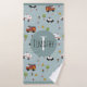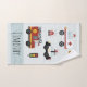 Ce modèle de serviettes de toilette bleu mignon et moderne comprend des illustrations de transport d'urgence et un motif, avec un camion de pompier, un incendie, une voiture de police et une ambulance. Il y a aussi de la place pour ajouter votre nom de garçon et monogramme dans une police simple. Un cadeau parfait pour les passionnés de transport !