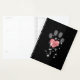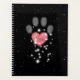 Empreinte de patte de chien en forme de cœur rose scintillant d'étoiles brillant vivement sur un ciel nocturne noir étoilé. Utilisez le modèle de texte pour créer un planificateur d'empreinte de patte mignon idéal pour les promeneurs de chiens et les gardes d'animaux. Personnalisez la couverture avec vos initiales, monogramme ou autre texte court inscrit sur la patte en forme de cœur rose. Au dos, vos services uniques d'entreprise animale, vos coordonnées et votre code QR apparaissent avec une lumière d'étoile magique. Conservez ou remplacez le fond étoilé. Modifiez pour changer la police et les couleurs de fond pour correspondre à votre marque. ♡ Idyllfire