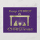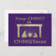 Scène nativité simple, arrière - plan violet foncé, silhouette dorée ombragée. Bébé Jésus accentué de poutres de lumière. Gardez CHRIST dans CHRISTmas. Il est moins cher de poster des cartes que les cartes ordinaires.