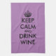 Restez calme et buvez du vin amusant cadeau de serviette de cuisine. Design couleur personnalisé avec typographie moderne et logo couronne. Faites votre propre mème humoristique. Amusant pour la maison, le bureau ou le travail. Exemple violet et noir. Parfait pour les amateurs de vin !