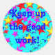 Sticker a un design étoilé coloré avec le message "garder le bon travail". Parfait pour les enseignants ! Ce design peut être customisé et fait un cadeau amusant aussi!