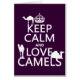 La conception lit "gardent le calme et aiment des chameaux". Elle est dans le style de l'affiche traditionnelle, et est décorée des silhouettes des chameaux sur les lettres. Elle est belle et propre et populaire avec toutes les fans des chameaux. Fait de grands cadeaux pour l'amant de chameau dans votre vie.