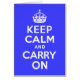 Gardez le calme et continuez sur un design de style vintage sur un arrière - plan bleu ciel.