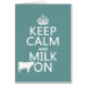 La conception lit gardent le calme et traient dessus, dans le style du classique gardent l'affiche calme. Il y a une silhouette d'une vache se tenant près des mots. C'est une conception populaire avec chacun qui aime le lait et des vaches, des agriculteurs et des laitiers.