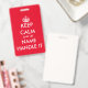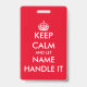 Gardez votre calme et laissez gérer cela badge nom drôle. Design amusant pour travailleur de bureau d'entreprise, employé, patron, collègue, ami, collègue, bénévole, enseignant, entraîneur, groupe, réunion, rassemblement, réunion de famille etc. Créez votre propre parodie de garde calme et continuez. Rouge ou couleur personnalisée.