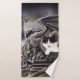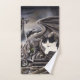 Un chaton Tuxedo noir et blanc est assis avec une gargouille. Derrière eux se trouve un château gothique et des dragons.
