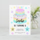 Cette invitation à 6e anniversaire de gâteau arc-en-ciel pour filles comprend un magnifique gâteau d'anniversaire dessiné à la main deux carreaux avec givrage arc-en-ciel blanc et saupoudré d'étoiles de confettis. Sur le dos est un amusant motif arc-en-ciel. Cette invitation a une pallette pastel ludique et ludique, idéale pour une fête d'anniversaire de petite fille. Customisez le texte pour votre occasion. Voir l'ensemble de la collection de fêtes de correspondance.