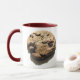 Une conception de tasse d'amusement avec une image de style d'aquarelle d'un gâteau aux pépites de chocolat, et une recette pour faire un gâteau aux pépites de chocolat de simple-service dans la micro-onde !