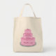 La peinture d'un gâteau rose à trois niveaux décoré de coeurs rose clair et de garniture rose foncé, sur un plateau d'argent, avec des espaces réservés pour votre texte personnalisé, est imprimée sur des sacs fourre-tout personnalisés. Le texte est facile à customiser et à coordonner avec le gâteau. Merci pour votre parrainage de CherylsArt sur Zazzle.