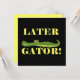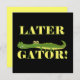 Un joli alligator vert avec un texte jaune qui se lit Later Gator! T-shirts Gator, sacs, tasses, magnets, porte - clés, gardiens, cartes, autocollants, boutons, coussins, et bien plus encore.