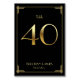 Cartes de numéro de table du mariage Great Gatsby Art Déco avec numéro d'or 40 et texte modifiable, où vous pouvez ajouter vos noms et date de mariage, imprimé sur arrière - plan noir