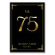 Cartes de numéro de table du mariage Great Gatsby Art Déco avec le numéro d'or 75 et le texte modifiable, où vous pouvez ajouter vos noms et la date du mariage, imprimé sur arrière - plan noir