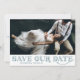 Annoncez votre date de mariage avec cette photo classique enregistrer la carte à plat date. Il dispose d'une typographie art déco turquoise avec motif correspondant. Personnalisez en ajoutant votre photo et vos détails. Ce thème vintage élégant, sauf l'annonce de la date, est parfait pour les mariages de thème Gatsby.