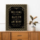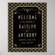 Célébrez dans le style grâce à cette enseigne d'accueil mariage de style art déco vintage des années 1920. Le libellé de l'exemple est facile à modifier en utilisant cette section personnalisée et vos invités de dîner seront ravis de voir ce fabuleux panneau d'accueil. Les éléments correspondants se trouvent dans la collection.