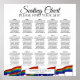 Ce tableau de sièges de réception est parfait pour tout mariage gay, lesbien ou lgbtq. Affiche les places assises pour 15 tables (150 personnes). Le design comporte quatre rangées de drapeaux de la fierté arc-en-ciel.