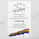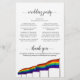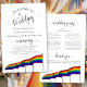 Ces programmes de mariage sont élégants et de bon goût, tout en étant toujours à l'aise avec le budget. Le design comporte une rangée de drapeaux gay pride arc-en-ciel, ce qui le rend parfait pour toute cérémonie LGBTQ. La typographie présente une calligraphie en dentelle noire, et il y a de la place pour des détails sur la cérémonie, la fête de mariage, et un bref merci.