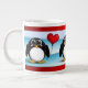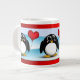 Un pingouin mignon tenant un ballon en forme de coeur rouge sur une tasse TRÈS grande. #penguin