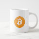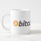 Logo de bitcoins orange et blanc avec le mot "bitcoin" dans une police de caractères fantaisie amusante.