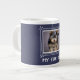 Montrez votre chiot précieux (ou minou !) avec cette tasse de café enorme faite sur commande. Le cadre blanc lunatique présente votre bébé adorable de fourrure. Téléchargez votre image préférée et choisissez un arrière - plan pour adapter à votre style ou décor. Cette tasse un-de-un-aimable fait le cadeau parfait pour n'importe quel parent d'animal familier ! La tasse enorme tient 20 onces. En outre disponible dans d'autres styles et tailles.